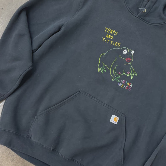 Hand Embroidered Terps and Titties Frog 2XL Carhartt Hoodie